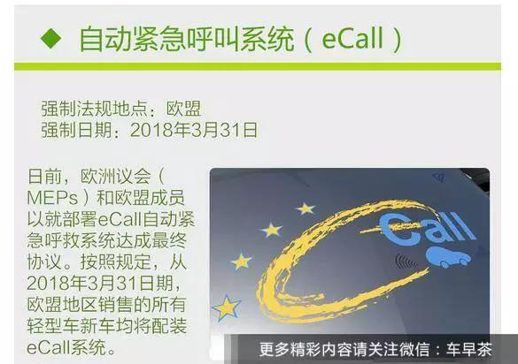 在2018年3月31日前,一切在歐盟商場(chǎng)出售的新車(chē)(轎車(chē)和輕型商用車(chē))都有必要配裝eCall體系。在未來(lái)3年中,歐洲委員會(huì )還將評估將eCall延伸到轎車(chē)類(lèi)型車(chē)輛,比方公共轎車(chē)、長(cháng)途客車(chē)、客車(chē)上的可能性。而在國內,這玩意呈現的概率還真是比較低啊。