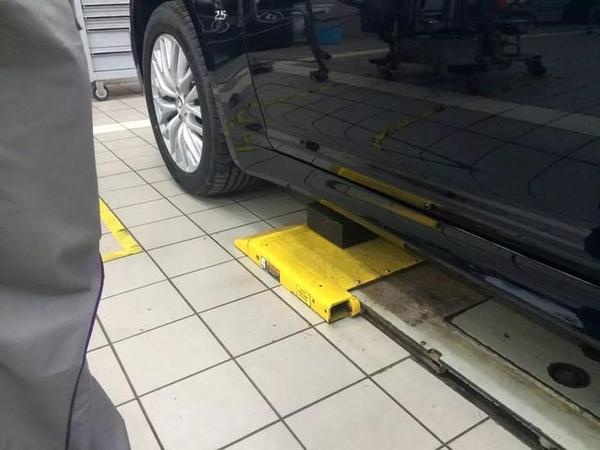然后就要把車(chē)升起來(lái)了,這種升降機需求墊上墊塊。