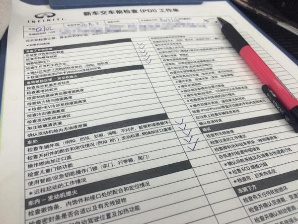路試以后,又加滿(mǎn)了油,悉數流程就完畢了。過(guò)程中這家英菲尼迪4S店的效勞仍是十分好的,悉數的查看流程也十分標準,情緒也極好(工作人員并不知道蔥哥是蔥哥,所以值得表彰)。