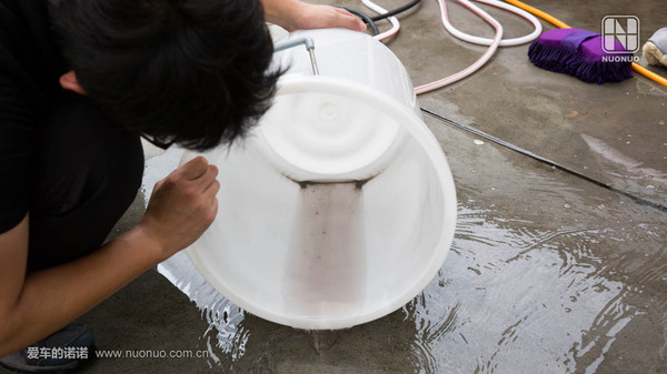一輛車(chē)清潔完后,能夠調查下清水桶的色彩已經(jīng)發(fā)黑。里邊都是從車(chē)身上清潔下來(lái)的泥沙。